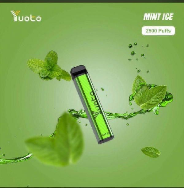 Yuoto Luscious Mint Ice 2500 Puffs is a disposable vape pen which as a result gives you a great way to enjoy salt nic vaping. It has a cylindrical form factor and a nicely tapered mouthpiece as well.